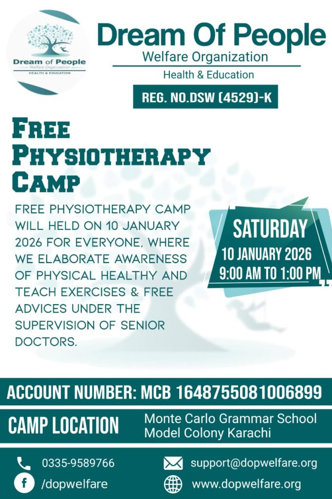 Dream of People Welfare Organization is pleased to announce a Free Physiotherapy Camp
